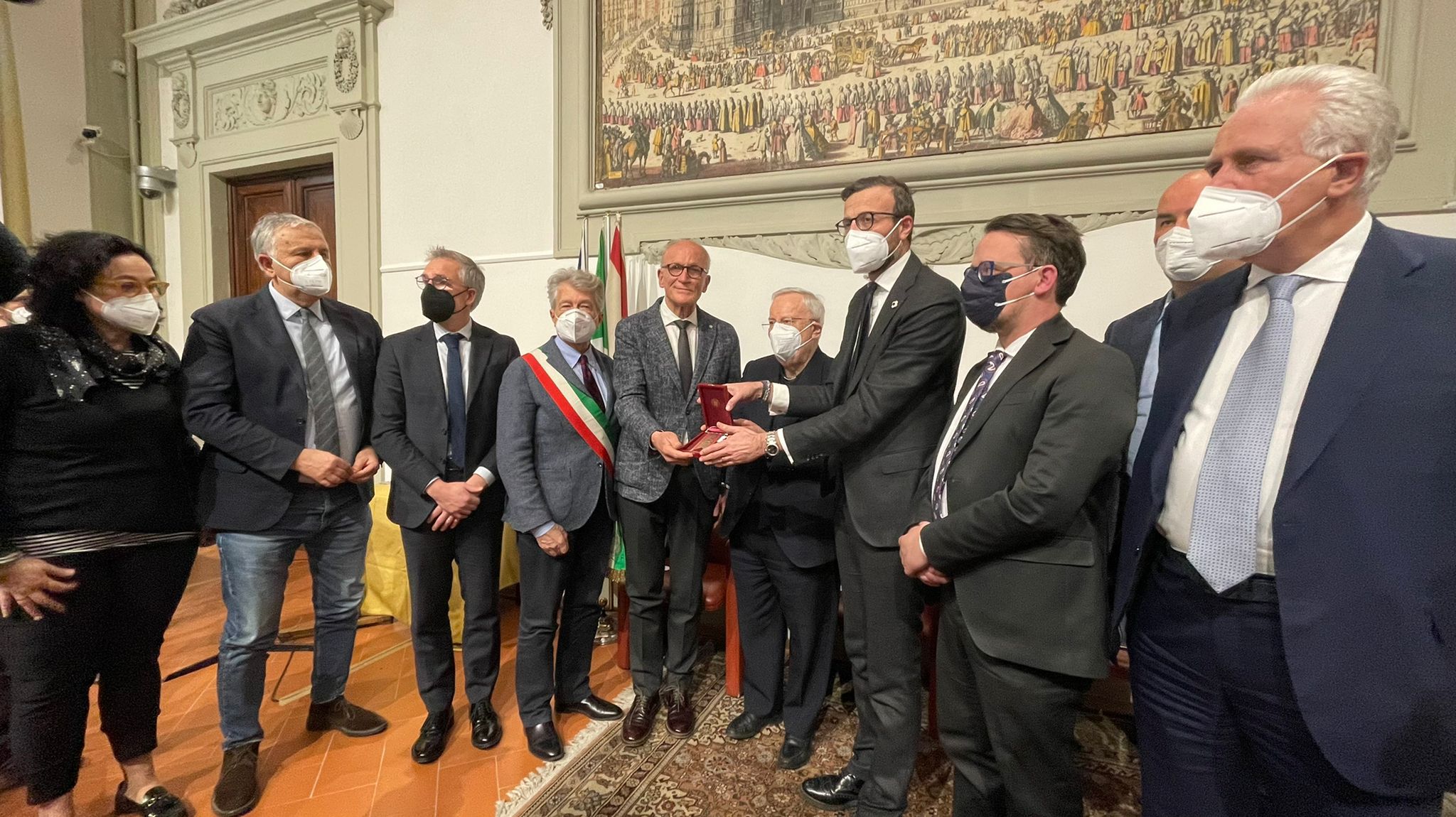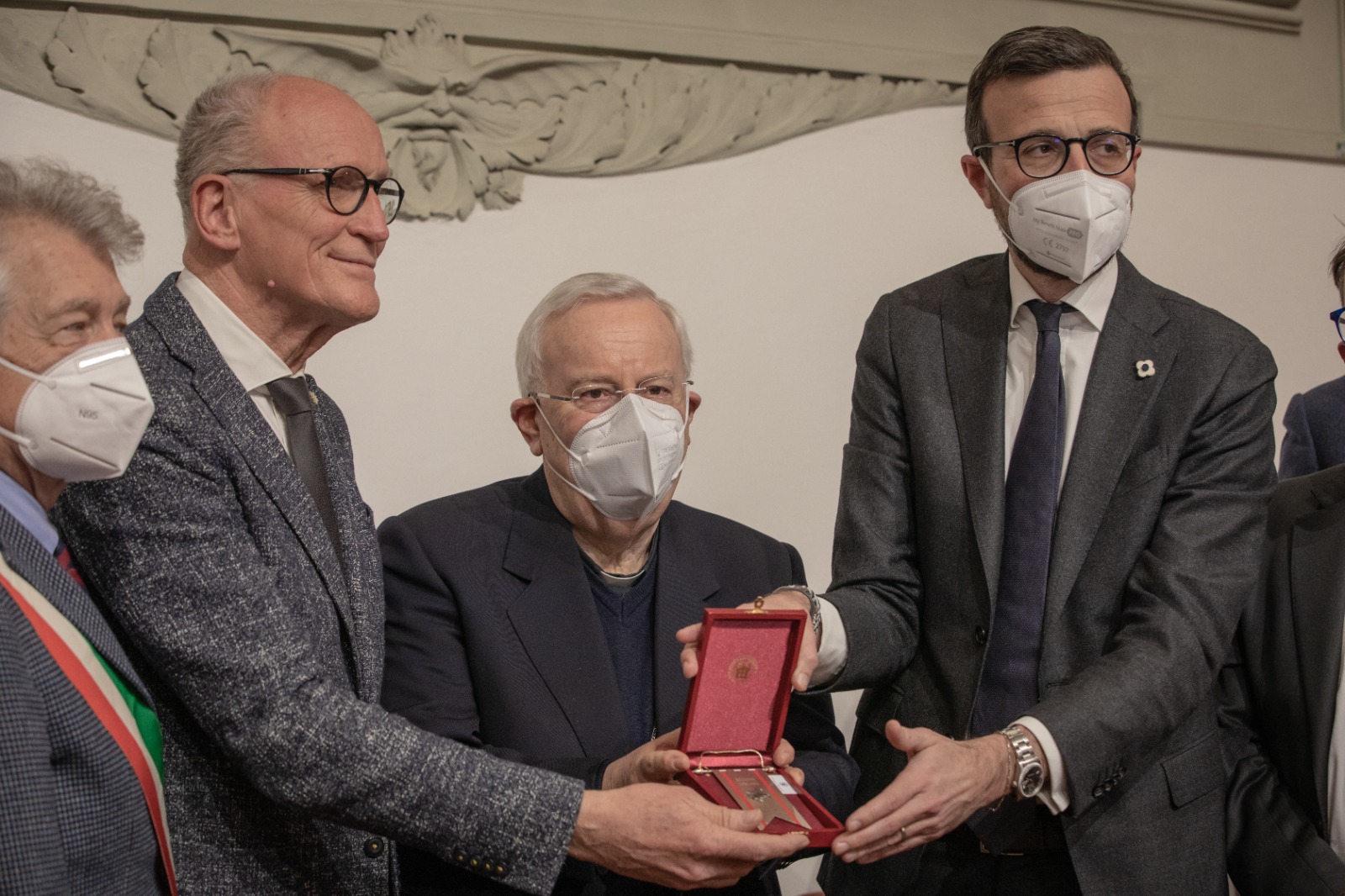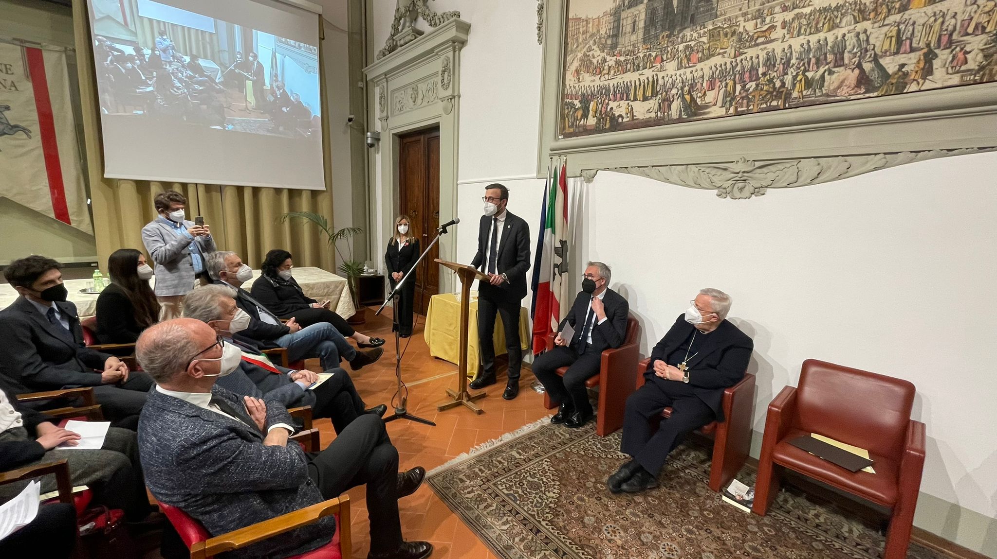 Firenze – Il Gonfalone d’argento del Consiglio regionale della Toscana è stato consegnato a Rondine Cittadella della Pace, “luogo di speranza, per lo straordinario impegno con cui da 25 anni forma giovani provenienti da tutto il mondo per favorire la risoluzione non violenta dei conflitti, il confronto, il dialogo e la pace”. Il massimo riconoscimento dell’Assemblea regionale è stato consegnato oggi, lunedì 28 febbraio, dal presidente Antonio Mazzeo a Franco Vaccari, alla presenza del cardinale Gualtiero Bassetti, presidente della Conferenza episcopale italiana. Come annunciato dieci giorni fa, in occasione della visita di una delegazione del Consiglio regionale, Mazzeo ha dato seguito all’impegno di assegnare il riconoscimento. Tante le autorità presenti oltre a Mazzeo: i vicepresidenti del Consiglio regionale Stefano Scaramelli e Marco Casucci, i consiglieri regionali Vincenzo Ceccarelli, Lucia De Robertis, Giovanni Galli, Fausto Merlotti, Massimiliano Pescini, Cristiano Benucci e Marco Stella, il presidente della Toscana Eugenio Giani, il sindaco di Arezzo Alessandro Ghinelli, il senatore Riccardo Nencini, anch’egli già presidente del Consiglio regionale, l’assessora all’Educazione e welfare del Comune di Firenze Sara Funaro e monsignor Vasco Giuliani.