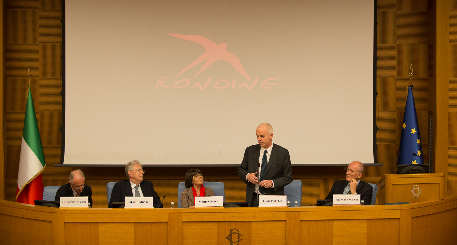 Dall’esperienza di Rondine Il professor Monti ha gettato uno sguardo che si apre all’Europa e porta una nuova speranza ai giovani: “Loro hanno abbandonato la guerra ma non la lotta, non la determinazione nell’affrontare le barriere che dividono i popoli e per questo saranno i futuri leader di domani attraverso azioni basate sul rispetto dell’altro. Ho accostato la loro esperienza a quella dei nostri giovani: anche in Italia ci sono conflitti, tensioni, per via delle varie crisi economiche e culturali che fanno nascere sospetto; la paura genera allontanamento, rabbia, frustrazione, aggressività. Dobbiamo imparare da Rondine per superare i nostri conflitti. Non arrendersi e agire insieme”.