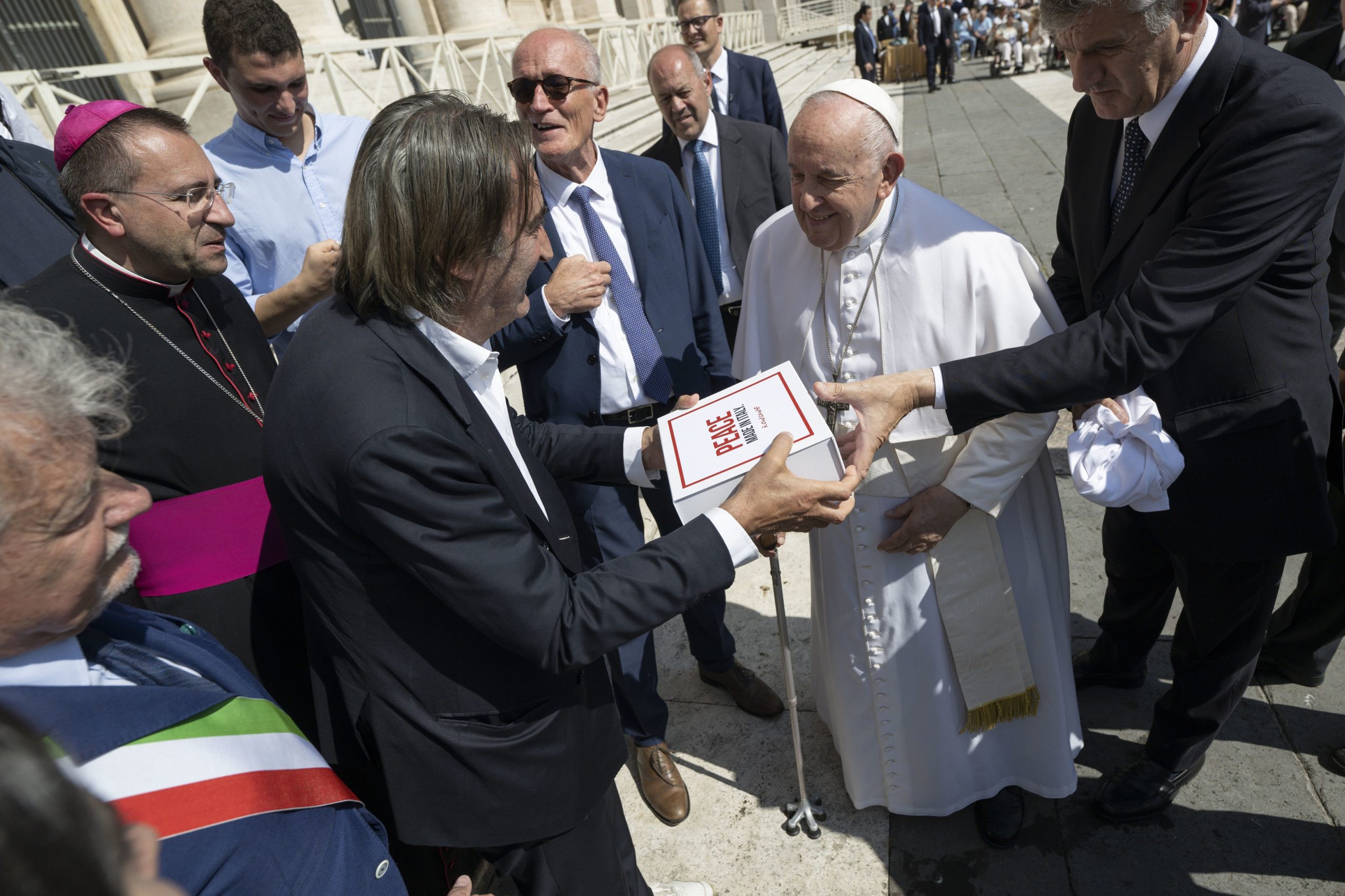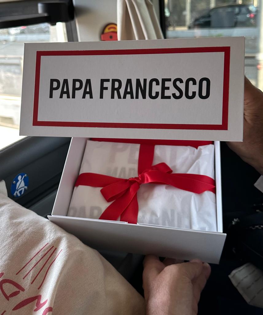 Presenti anche il Sindaco di Arezzo Alessandro Ghinelli e Beppe Angiolini, fondatore e titolare dell’azienda di moda Sugar. Quest’ultimo ha poi consegnato al Santo Padre, come omaggio al primo “camminatore per la pace”, la T-shirt Sugar special edition dedicata a Rondine, che diventerà l’ “uniforme” di YouTopic Fest 2023, il Festival internazionale sul conflitto che si terrà nella Cittadella della Pace, dall’8 al 11 giugno.