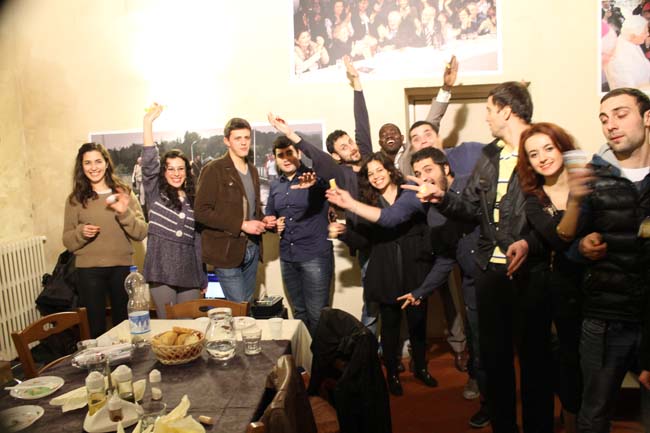 Tutti gli studenti si sono impegnati per organizzare l’evento. Dejan ha allestito la sala da pranzo, Suha ha cucinato un piatto tipico della tradizione palestinese mentre le altre giovani hanno preparato ognuna un dolce speciale per l’occasione. Dopo la cena si è svolta la piccola cerimonia di consegna della Rondine d’Oro da parte del Vicepresidente e nel suo discorso Ibrahim ha ripercorso le emozioni più grandi che ha vissuto a Rondine.