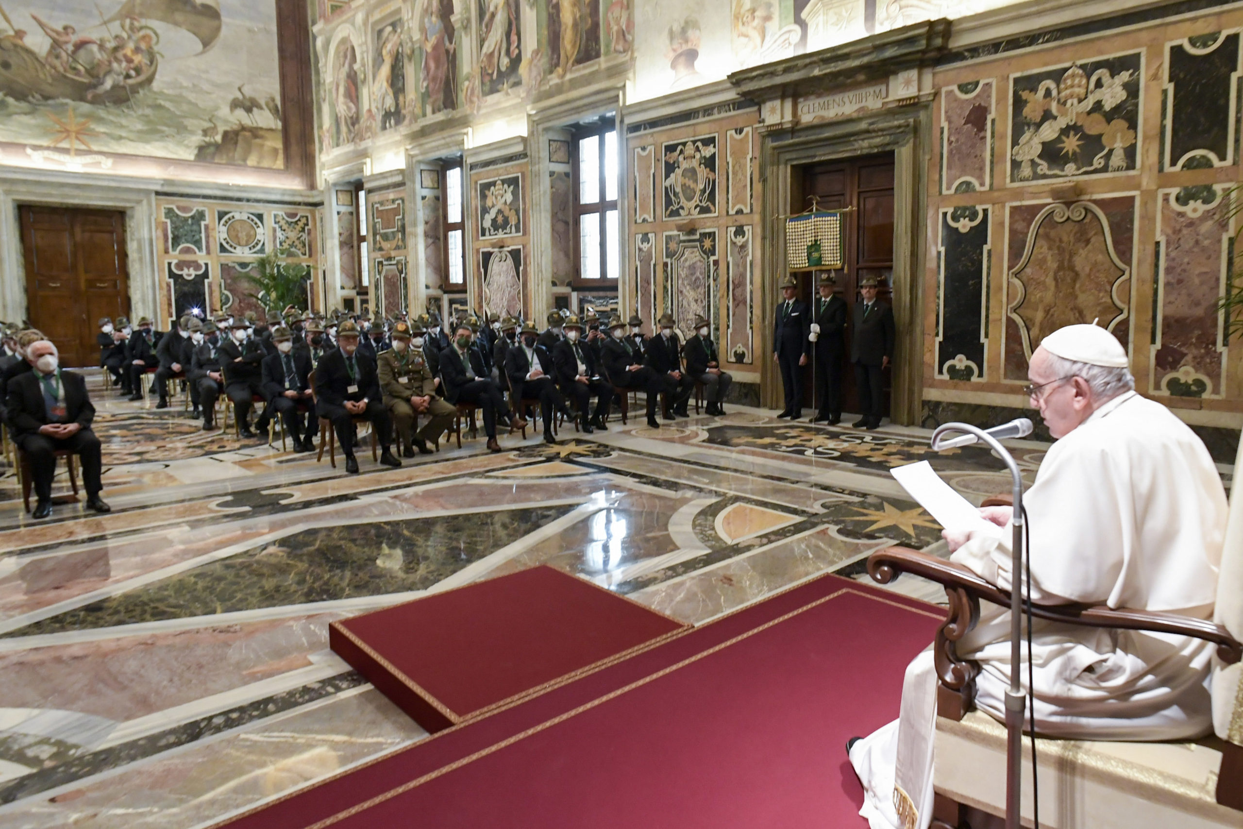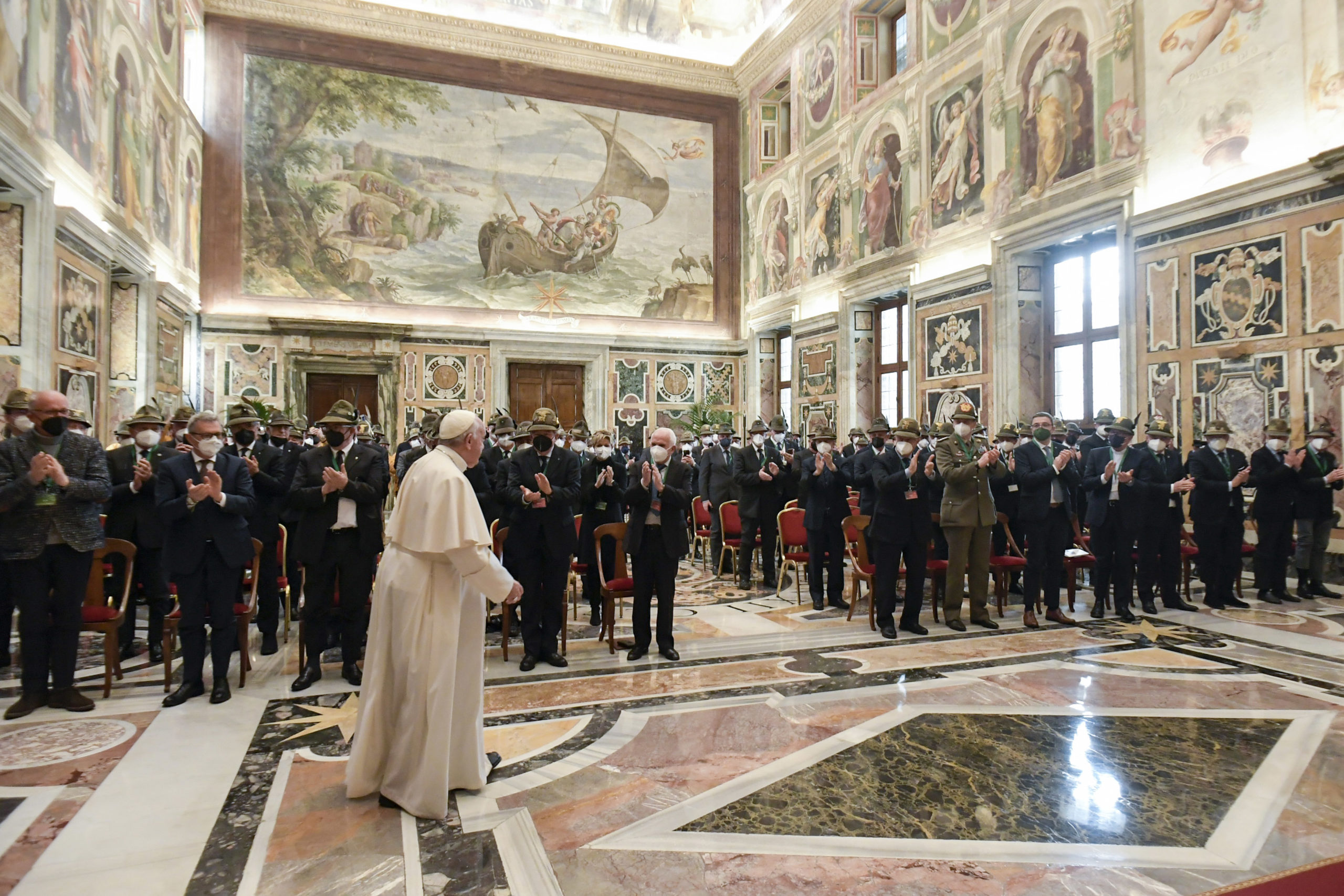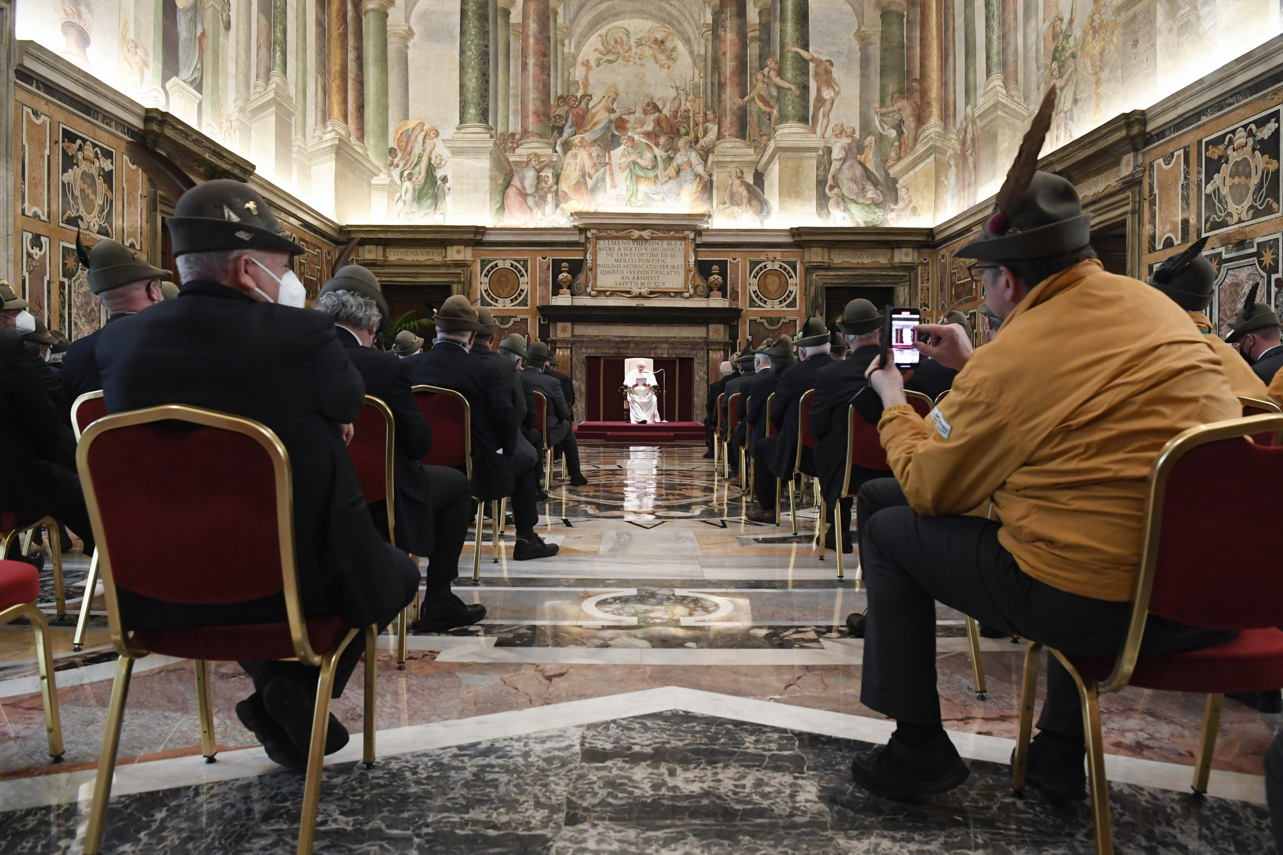 All’incontro era presente una rappresentanza di circa 110 Alpini, provenienti da tutte le regioni d’Italia che, invocando la benedizione del Santo Padre, ha deciso di offrire 10 mila ore di lavoro volontario a favore dell’Associazione Rondine Cittadella della Pace, pensando in particolare allo Studentato Internazionale World House, come opportunità di reciproca conoscenza e di integrazione tra i soci volontari di diversa età – giovani e anziani provenienti da tutte le parti d’Italia e dall’estero – e i giovani studenti di Rondine.