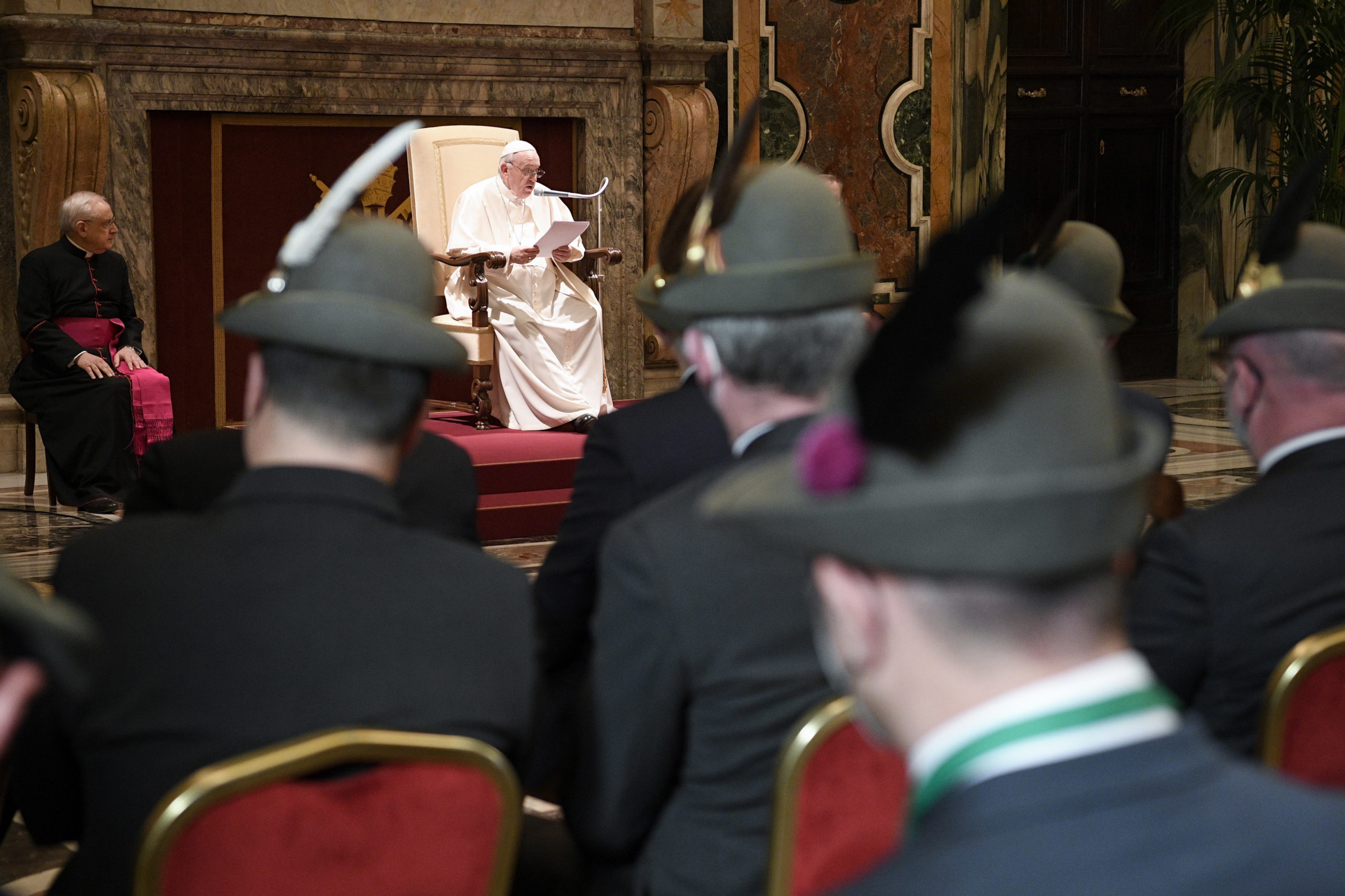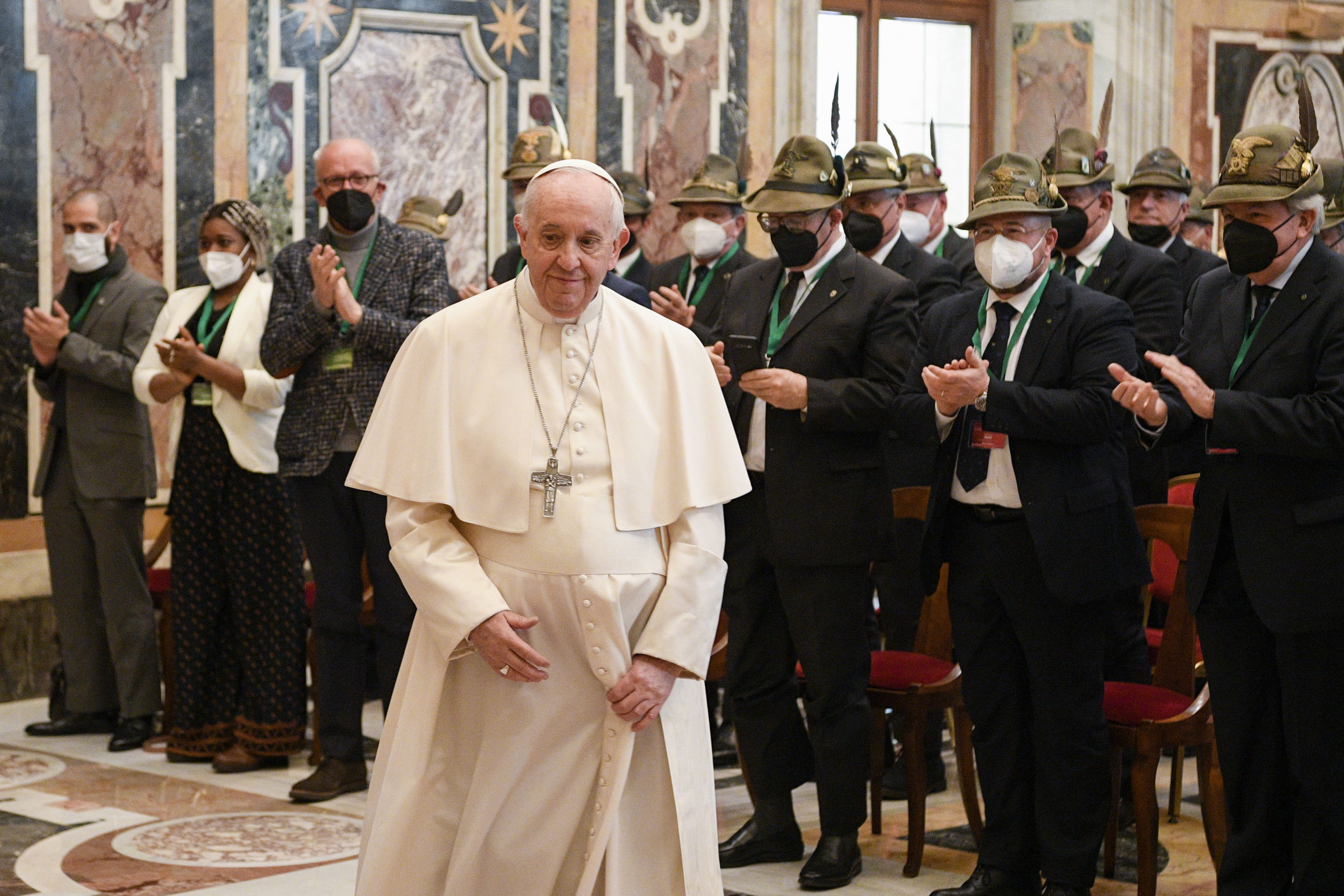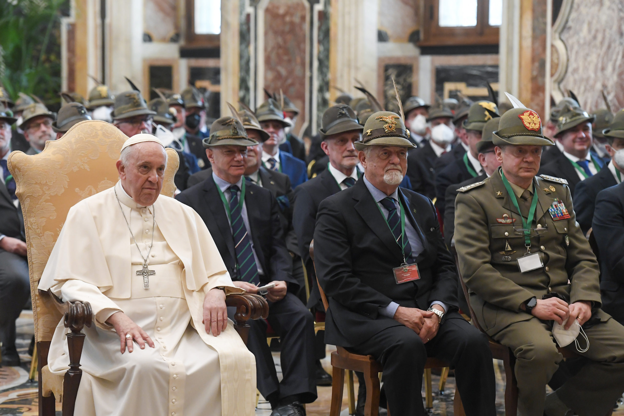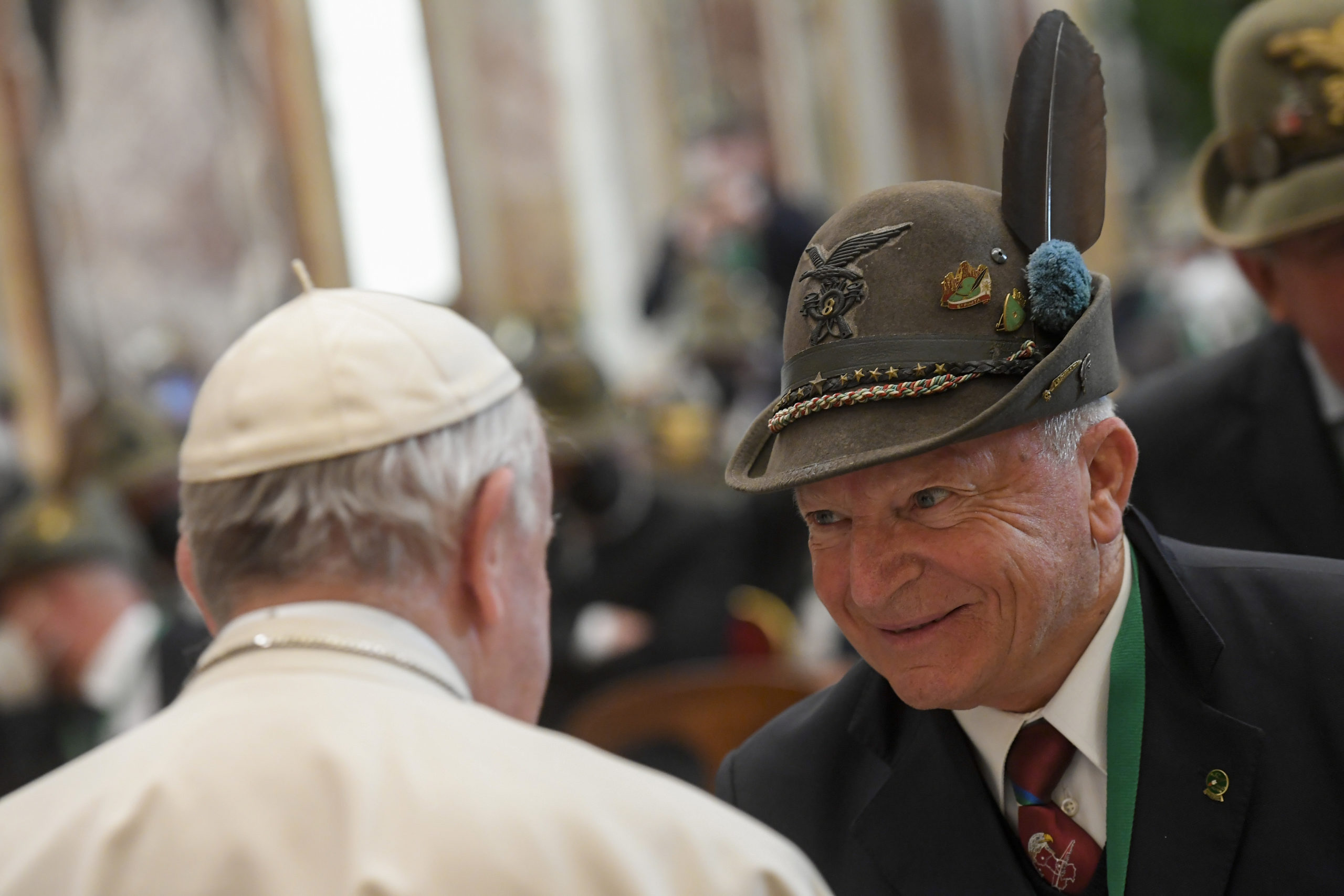 “Vorrei incoraggiarvi ad andare avanti così: ancorati alle radici, alla memoria, e al tempo stesso “legati in cordata”, solerti nell’aiutarvi. Siete una bella testimonianza di fraternità e servizio”. Sono le parole di benvenuto di Papa Francesco ai Soci dell’Associazione Nazionale Alpini che, insieme a Rondine Cittadella della Pace, sono stati ricevuti stamane in udienza privata.